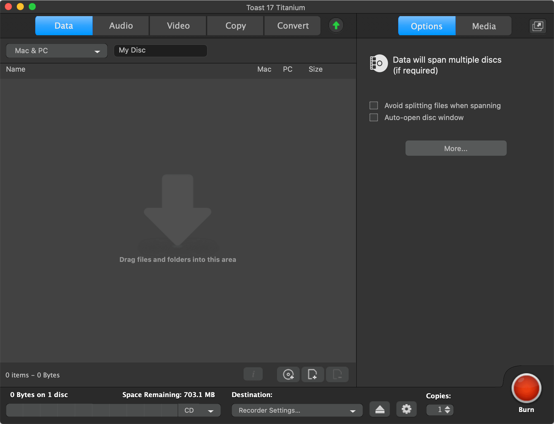 创建包含Mac,PC或两者内容的混合光盘