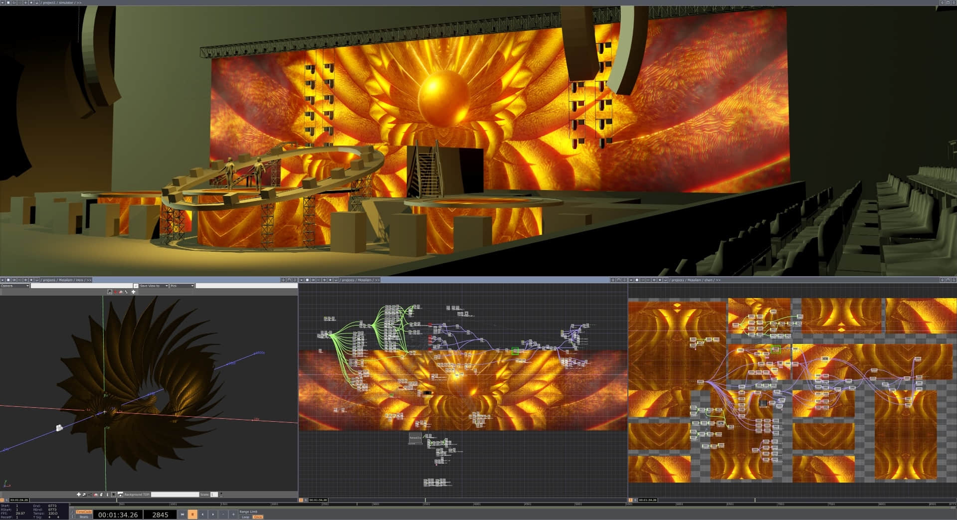 TouchDesigner 技术可以与所有类型现场表演中使用的照明设备、音频系统、输入和输出设备以及表演控制系统进行通信。