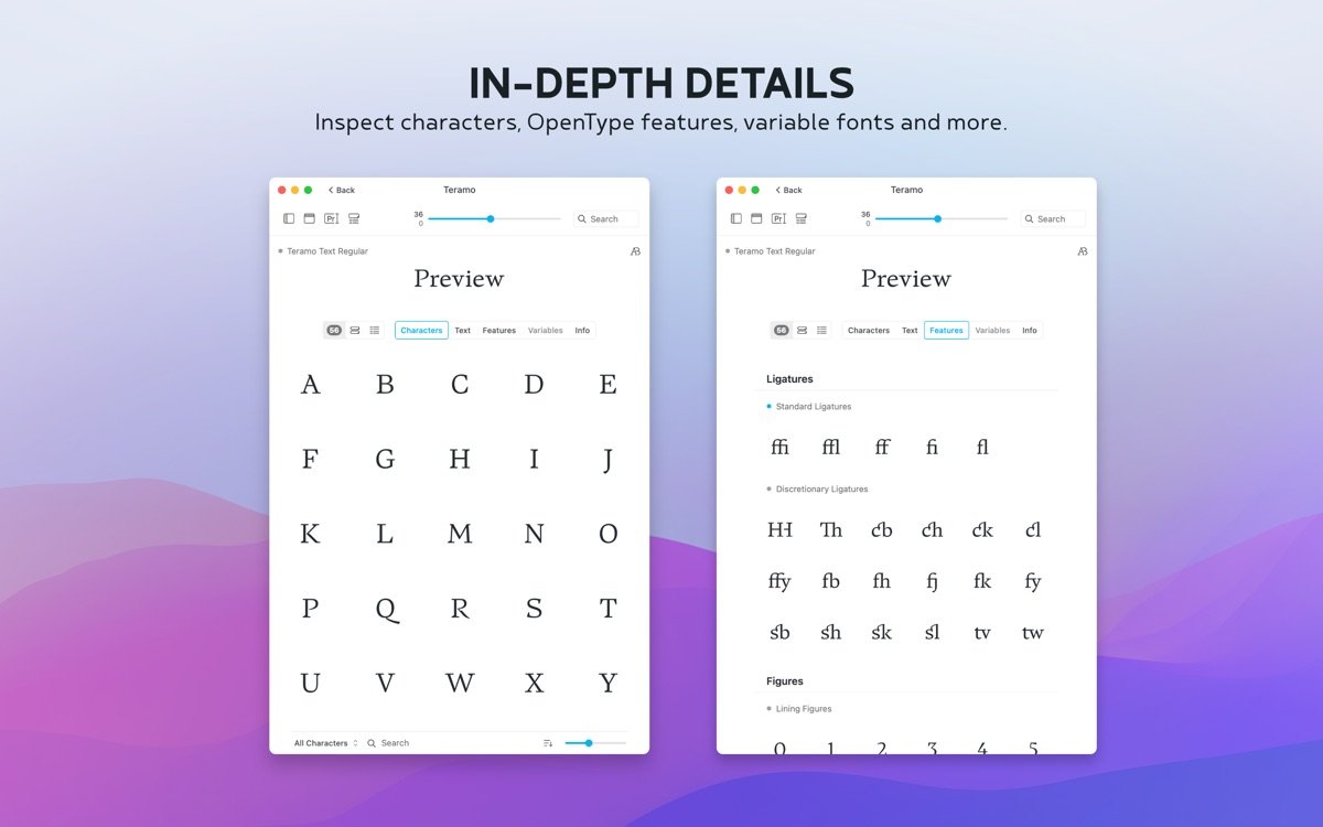 - 新增通过主菜单 Font > Pair…(Command-K)或右键上下文菜单直接启动 Pairing Studio 来搭配字体。