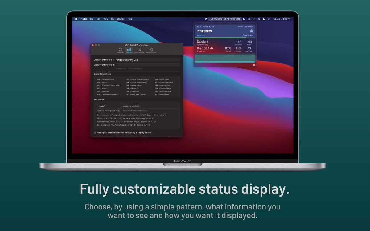 1. 自定义菜单栏显示:用户可以自由选择要展示的信息,比如信号强度、IP地址、BSSID、传输速率等,还能调整显示格式和顺序,甚至支持多行布局,满足不同使用习惯。